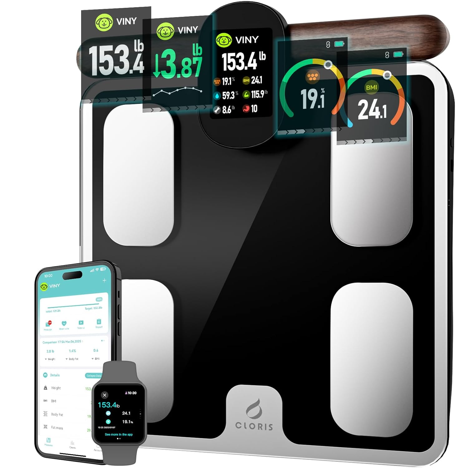CLORIS Digital Smart Scale for Body Weight Fat BMI Muscle Mass 28 Body Composition Measurement Health Analyzer 8 Electrodes with App Bluetooth. Full-Color TFT LCD