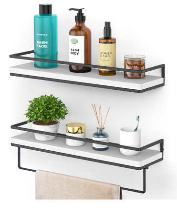 Meangood Floating Shelves Wall Mounted with Towel Bar Rustic Wood for Bedroom.Living Room.Bathroom. Kitchen White
