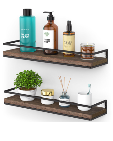Meangood Floating Shelves Wall Mounted Set of 2. Rustic Wood Wall Storage Shelves for Bedroom.Living Room.Bathroom. Kitchen Torched Wood